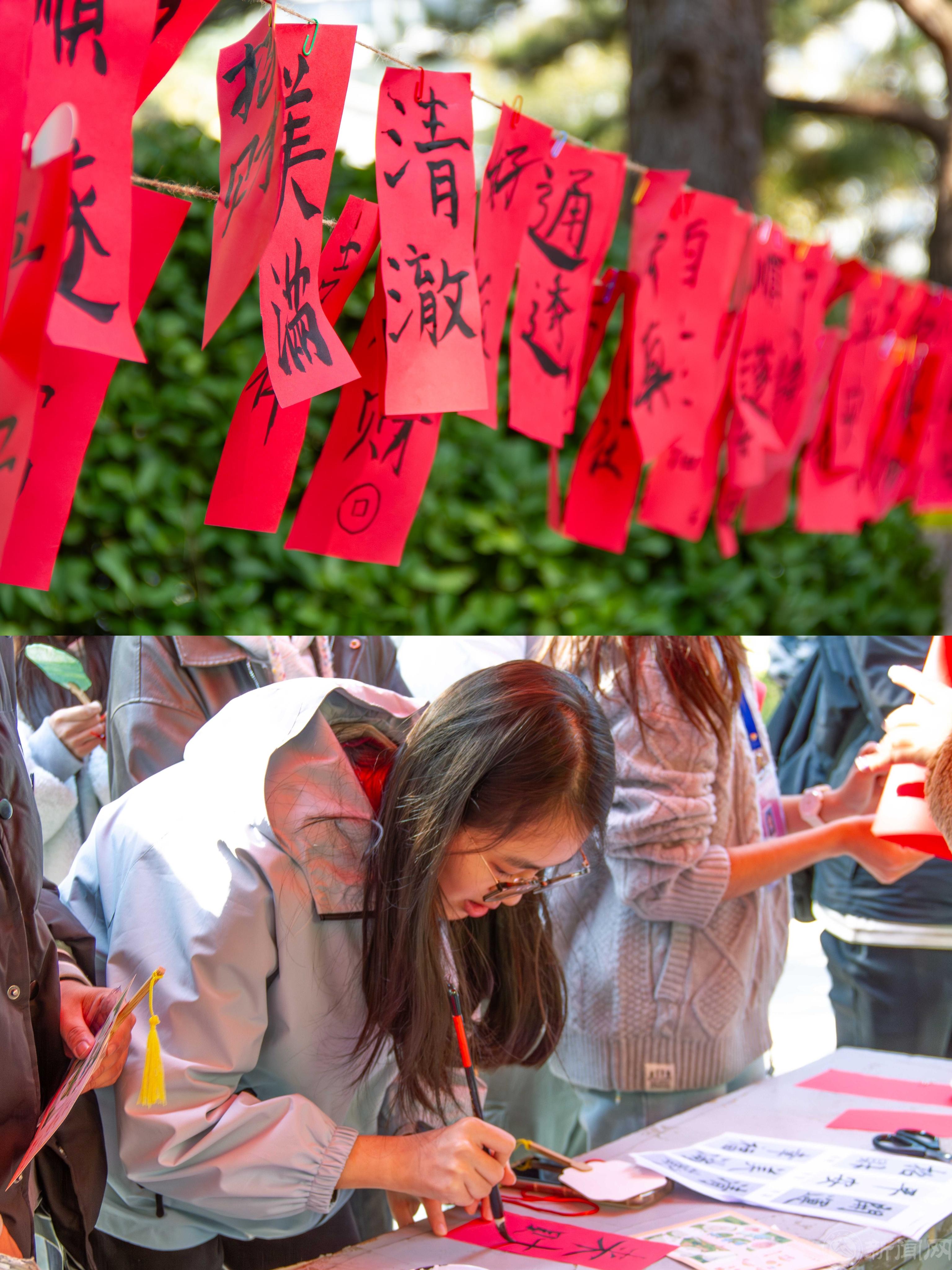 “情绪福韵墙”——在这里用毛笔在红纸上写下吉祥字,作为对生活美好的祝愿和向往。