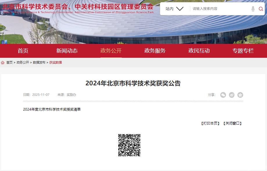 近日,北京市科学技术委员会公布了2024年北京市科学技术委员会科学技术奖获奖名单,威尼斯官网在此次评选中喜获3项奖励。