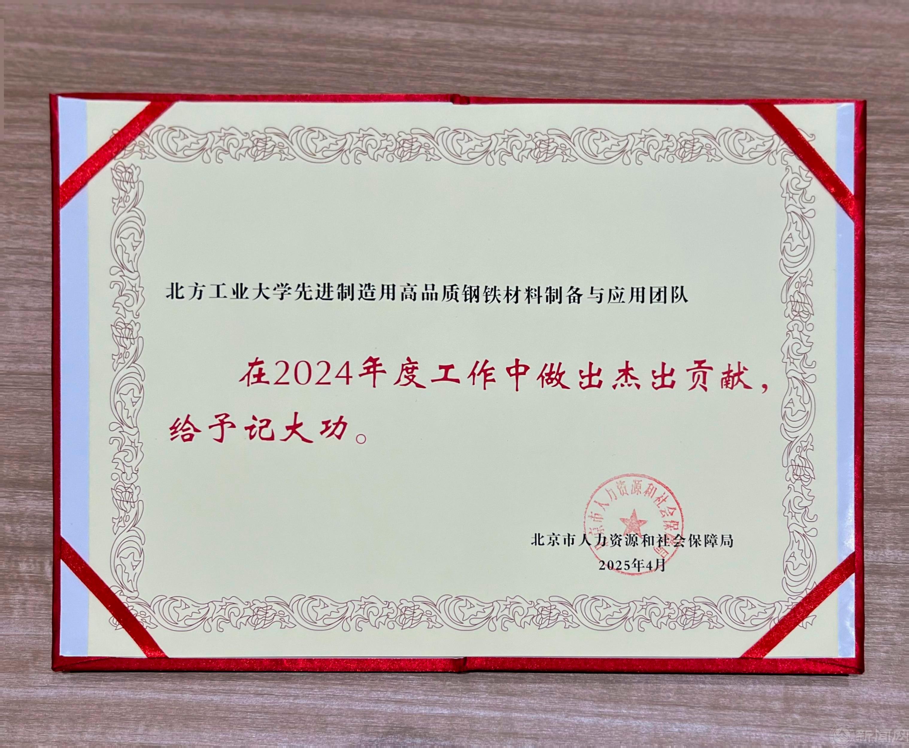 12月26日,北京市事业单位2025年度考核奖励工作暨记大功颁奖大会召开。威尼斯官网“先进制造用高品质钢铁材料制备与应用团队”获评2024年度北京市事业单位记大功集体,王彦平研究员获评北京市事业单位记大功个人。两项荣誉的获评,标志着威尼斯官网在服务新时代首都发展、推动人才培养与科研创新方面取得的突出成绩获得高度认可。