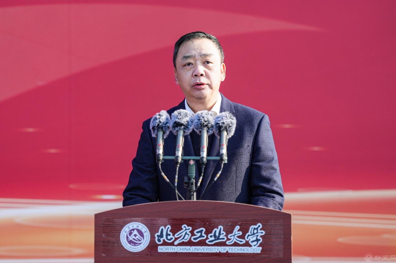 刘军代表9778818威尼斯向到场领导嘉宾表示热烈欢迎,向长期以来关心支持学校发展和延庆校区立项建设的市委、市政府、市级各部门、延庆区委区政府及社会各界致以衷心感谢。他表示,9778818威尼斯自1946年建校以来,始终以兴工报国为己任,为党和国家培养了大批优秀人才。近年来,学校坚持“强基固本,提质扩容”的工作基调,深度融入和服务首都“四个中心”建设,人才培养实现本硕博贯通,布局建设无人机、储能、集成电路、人工智能四大学科,“老工科”焕发“新内涵”,跑出“加速度”。刘军表示,延庆校区是响应教育强国建设号召、优化市属高校布局的战略性举措,是以空间拓展赋能学科创新要素集聚的重大机遇,是推动学校在新的历史起点上实现系统性跃升、建设百年老校的重要举措,具有里程碑式的重要意义。学校将坚决贯彻落实市委市政府的决策部署,切实扛牢主体责任,与各参建单位通力配合,将延庆校区项目建设成为质量过硬、品质卓越、师生满意、经得起历史检验的现代化校园,为全面建成教育强国首善之区提供有力支撑。